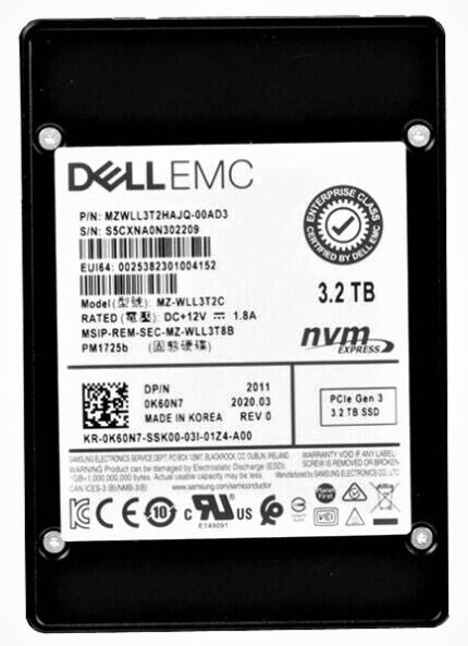 Refurbished | Samsung PM1725b MZWLL3T2HAJQ-000D3 SSD 3.2 TB PCIe 3.0 x4 (NVMe) Dell OEM Refurbished