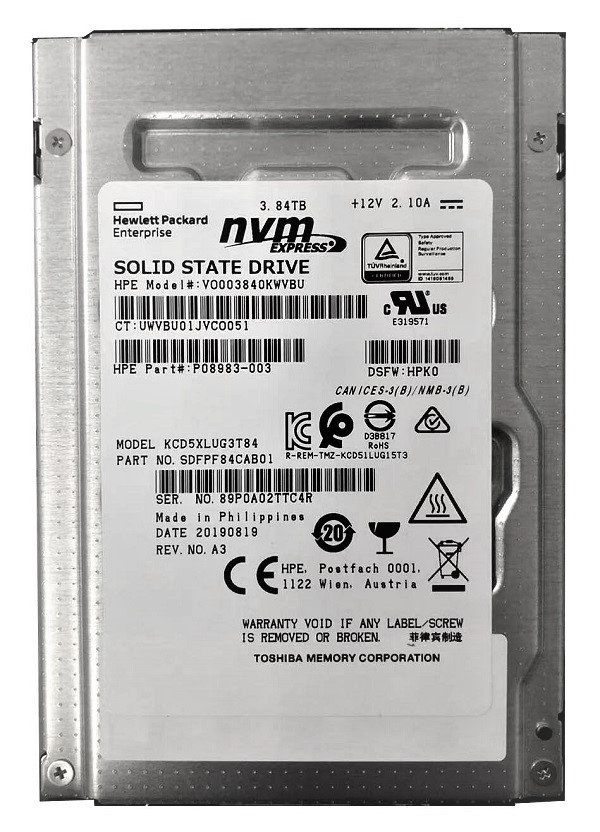 Refurbished | Kioxia CD5 KCD5XLUG3T84 Read Intensive SSD 3.84 TB PCIe 3.0 x4 (NVMe) HPE OEM Renew Factory Sealed