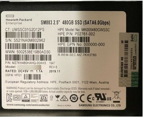 Refurbished | Samsung SM883 MZ7KH480HAHQ-00AH3 Mixed Use SSD 480 GB SATA 6Gb/s HPE OEM Refurbished